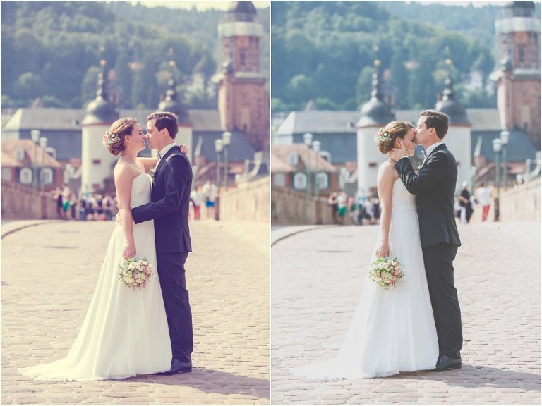 Eine Hochzeit in Heidelberg! Als mir Isabel und Karsten aus Freiburg erzählten, dass sie sich ihr JA-Wort in meiner Lieblingsstadt geben wollten war ich sofort begeistert von der Idee. Und so trafen wir uns früh morgens auf der alten Brücke, wo Karsten seine Isabel zum ersten Mal in ihrem umwerfenden Brautkleid sehen durfte. Dadurch hatten wir bis zur kirchlichen Trauung noch genügend Zeit für die entspannten Portraits-Aufnahmen am Neckar. Bei der kirchlichen Trauung waren die persönlichen Ehegelübde mein persönliches Highlight, das mich zu Tränen rührte. So schön. Anschließend ging es zu Stephan’s in Heidelberg, wo die Hochzeit mit einem rauschenden Fest weiterging.